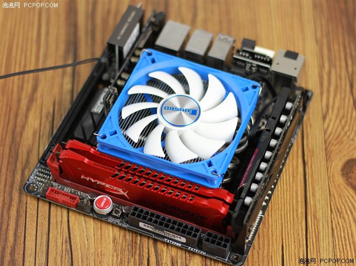 喬思伯HP-400是一款超薄下壓式散熱,整體尺寸為103X92X36mm,高度僅為36mm,可以說任何一款HTPC小機箱都能兼容這款散熱;散熱器搭載一枚90mm靜音風扇,風扇雖小但靜音效果一點都不差,經過測試風扇滿載運行時甚至要比一些採用12cm的大尺寸風扇的散熱器還要安靜一些。
