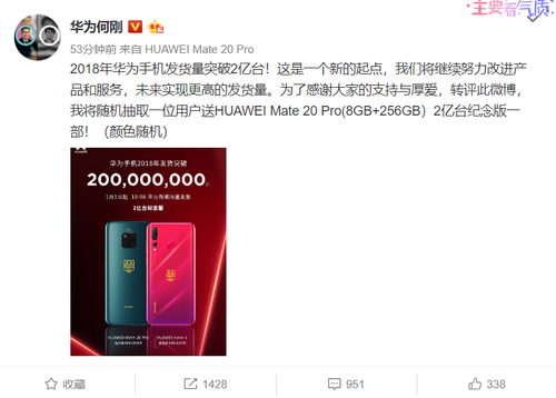 12月23日,華為官方發表聲明稱華為手機2018年全球出貨量突破2億臺,破了自己的記錄,又創造了一個新的記錄。今日,華為終端手機產品線總裁何剛在微博稱,為慶祝2018年華為手機發貨量突破2億臺,華為將推出2億臺紀念版手機。