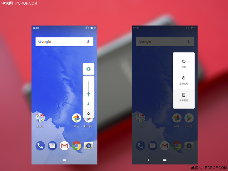 另外,Android P Beta還改變了此前音量調節以及長按電源鍵操作時的顯示方式,以縱排的方式顯示在屏幕右側,使得喚出功能時功能區域對於顯示的遮擋更小。
