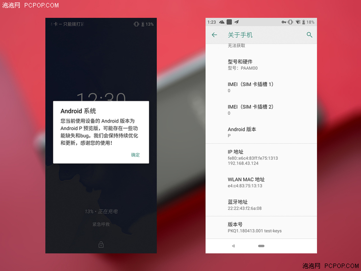 開機設置後,系統也會主動提示目前為Android預覽版,「可能存在一些功能缺失和BUG」,這一點做得十分貼心。這是進入到系統中,即可看到Android版本升級到了最新的Android P。