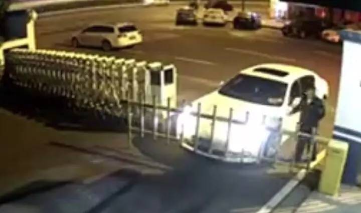 蔣某找到車子備用鑰匙後,居然開車直接來到派出所門口,執勤保安了解情況後,沒有同意蔣某進入,蔣某竟駕駛保時捷直接撞擊。