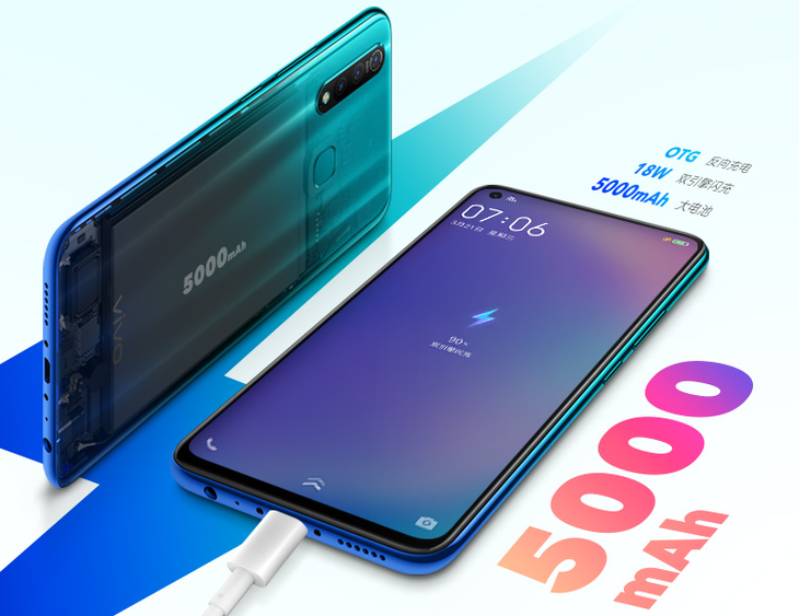 vivo Z5x是vivo於5月24日發布的一款主打性價比的Z系列新品,目前屬於千元機中的銷量王。從外觀來看,vivo Z5x配備了一塊6.53英寸、解析度為2340*1080的屏幕。同時首次將打孔屏引入到千元機上,極點孔徑僅有4.59mm,屏佔比達到了90.77%。此外,vivo Z5x擁有幻影黑、極夜黑和極光色三種配色。