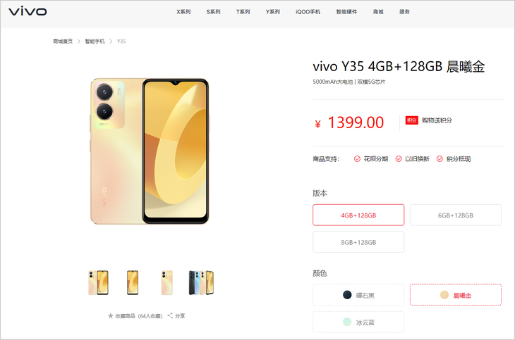總的來看,vivo Y35在美觀性、實用性方面均很不錯,稱得上是千元級市場上的實力派。目前在vivo官網,這款新機低至1399元即可擁有,心動的朋友們可以前往選購。