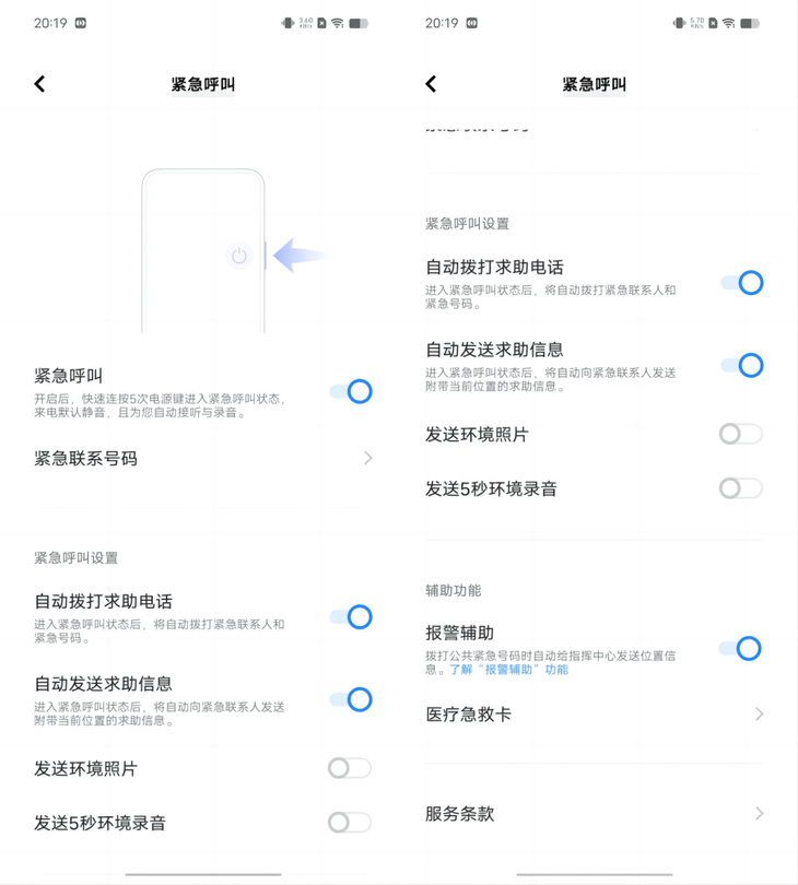 vivo Y35也支持緊急呼叫功能,開啟後連續按5次電源鍵即可開啟緊急呼叫。同時,手機也支持報警輔助功能,可以自動給指揮中心發送位置信息,關鍵時刻帶來更貼心的保護。