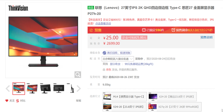 8月18日消息,聯想ThinkVision思匠27顯示器今日正式上市。